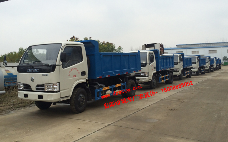 車型四:東風(fēng)福瑞卡5噸自卸垃圾車,分帶液壓蓋及不帶液壓蓋兩種,以下為不帶蓋方式