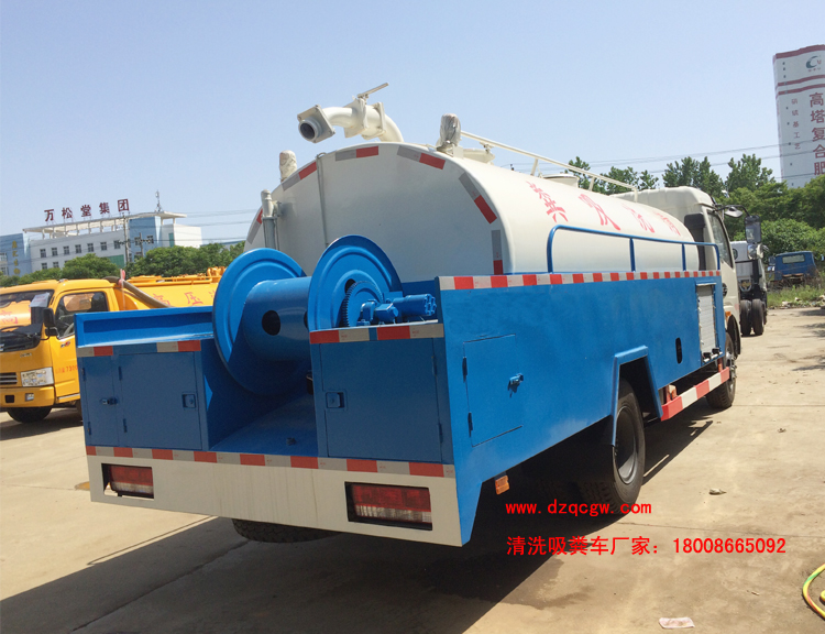 底盤說明:東風多利卡國五單排可翻轉駕駛室,3800mm軸距,多種可選國五發(fā)動機,5檔變速箱,前橋2.5噸,后橋5噸,8.25R20鋼絲胎,方向助力,斷氣剎,ABS,尿素罐,排氣制動。罐體有效容積為5.7立方。罐體外形尺寸(長×長軸×短軸)(mm):4200×1950×1200。 改裝部分:進口高壓泵或國產天津泵,直徑19mm軟管60米,十個高壓沖頭,帶視糞窗,1個自流口,洗手裝置,1根6米吸糞管,帶吊桿座。真空泵,油水分離器。 |