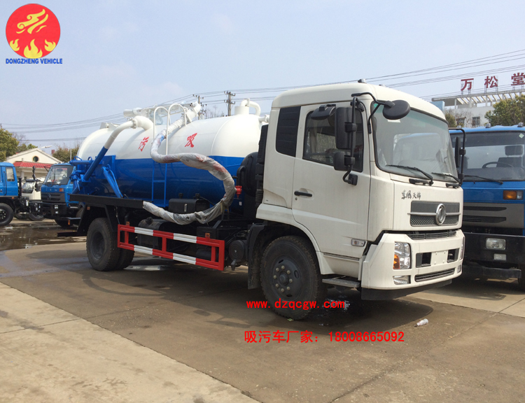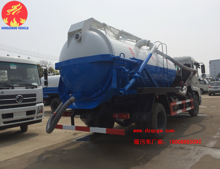 我公司生產(chǎn)的東風(fēng)天錦吸污車整車型號SZD5160GXWD5V,底盤采用東風(fēng)天錦單橋底盤,國五康機180馬力發(fā)動機,罐體有效容積9.45方,罐體一次性成型,罐體液壓舉升,后蓋液壓打開自卸,標準配置雙聯(lián)泵,而水循環(huán)式吸污泵,真空度更高,垂直吸度更高。