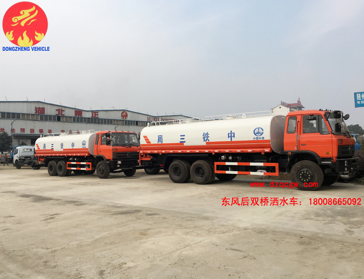 6、東風后雙橋灑水車,有效容積19方,4350+1300mm軸距,康明斯220馬力發(fā)動機。