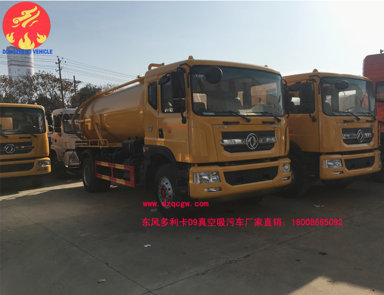 8臺(tái)東風(fēng)多利卡D9新款真空吸污車出廠,該批D9真空吸污車,采用東風(fēng)D9新款駕駛室,4500mm軸距,康明斯180馬力,罐體容積為9.8立方。配備億豐雙聯(lián)真空泵,帶油水分離器,四通閥,洗手裝置,罐體后封頭球閥控制自流口1個(gè),1個(gè)視污窗,1根7m吸糞管,舉升式罐體,罐體兩側(cè)油缸,后蓋液壓開啟,機(jī)械鎖緊,帶液位報(bào)警?蛇x裝承重報(bào)警器,進(jìn)口刮片威龍泵,雙聯(lián)泵,加裝灑水裝置。