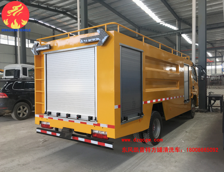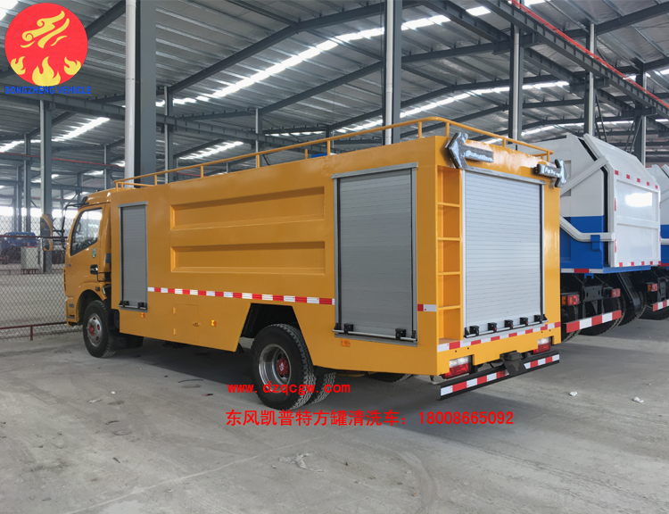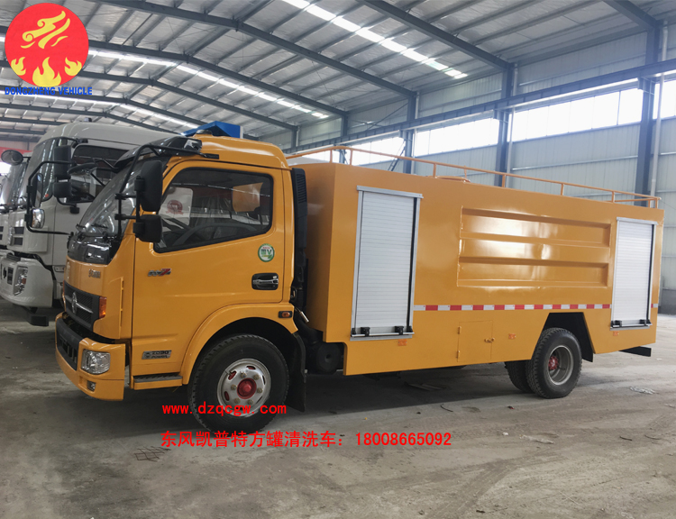 國(guó)五東風(fēng)凱普特K7清洗車出廠,區(qū)別于以往的清洗車,該車型的罐體為方罐,配備天津雙耀高壓清洗泵,流量為170L/min。采用東風(fēng)凱普特K7國(guó)五底盤,3800mm軸距,康機(jī)141馬力發(fā)動(dòng)機(jī),鋼絲胎帶ABS。罐體有效容積為6個(gè)方。