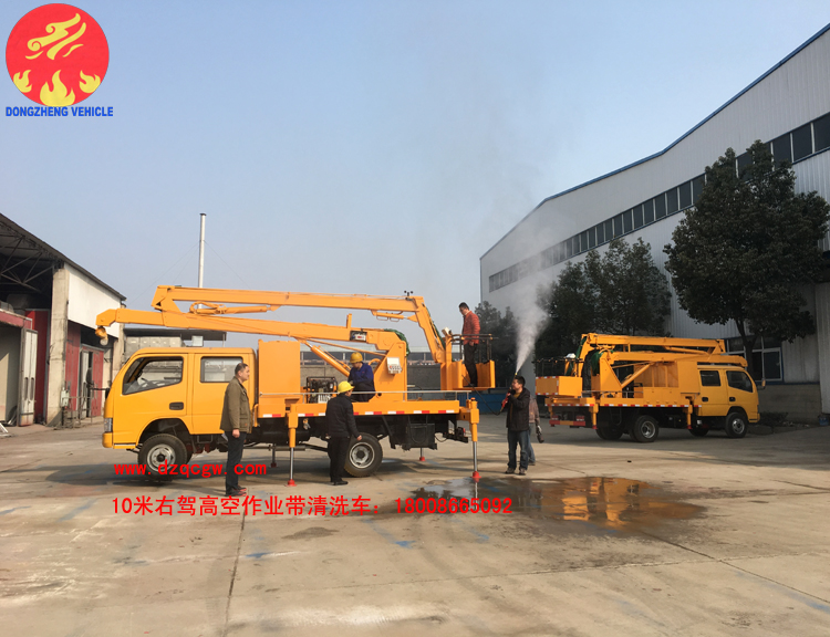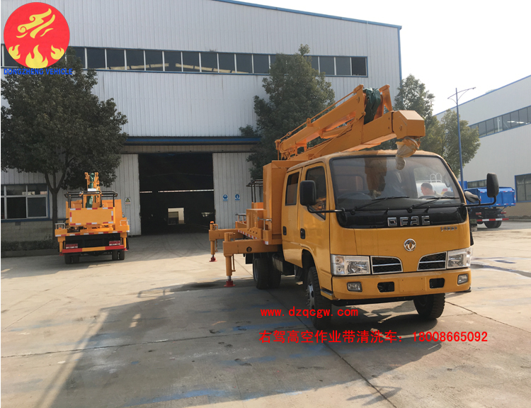 該車型采用東風(fēng)原裝雙排右駕底盤,朝柴發(fā)動機,帶動力轉(zhuǎn)向。該車型的作業(yè)高度可達12米,電控操作,可伸縮前臂,1噸吊鉤。360度液壓回轉(zhuǎn)大臂,帶可伸縮調(diào)節(jié)支腿,液壓平衡閥換向閥。帶24Mpa高壓清洗裝置,24V風(fēng)速報警儀等裝置。