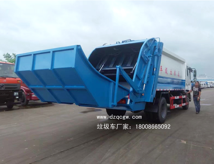 底盤說(shuō)明:東風(fēng)天錦國(guó)五底盤,國(guó)五康明斯發(fā)動(dòng)機(jī),4.5T前橋,9噸后橋,東風(fēng)6檔變速箱,9.00R20鋼絲胎,帶空調(diào),ABS。 上裝說(shuō)明: 廂體材料為武鋼優(yōu)質(zhì)炭鋼,厚度為邊5mm,廂體容積為12-13立方米。由裝料機(jī)構(gòu)、壓縮機(jī)構(gòu)、卸料機(jī)構(gòu)、油泵、油箱、控制閥等組成的液壓機(jī)構(gòu)組成。裝料機(jī)構(gòu)由支架、連桿機(jī)構(gòu)、凸輪、掛鉤等組成,在油缸作用下,將垃圾桶內(nèi)的垃圾自動(dòng)翻轉(zhuǎn)倒入料斗內(nèi)。新款有9支液壓缸制動(dòng),不帶副壓板,液壓控制操作系統(tǒng)為電動(dòng)控制和手動(dòng)控制。 后翻轉(zhuǎn)機(jī)構(gòu)選裝:1、掛桶翻轉(zhuǎn)機(jī)構(gòu)(可選帶鐵桶或塑料桶),手動(dòng)及電控操作 2、簸箕斗翻轉(zhuǎn)機(jī)構(gòu) 3、擺臂式翻轉(zhuǎn)機(jī)構(gòu) |