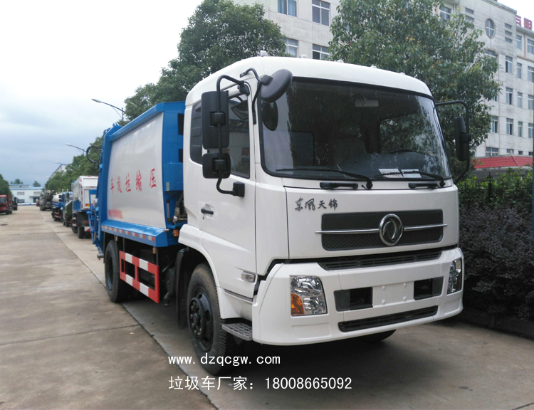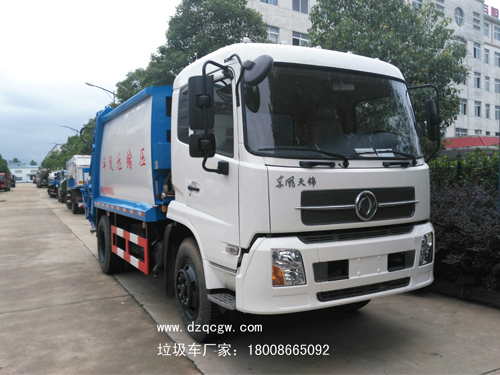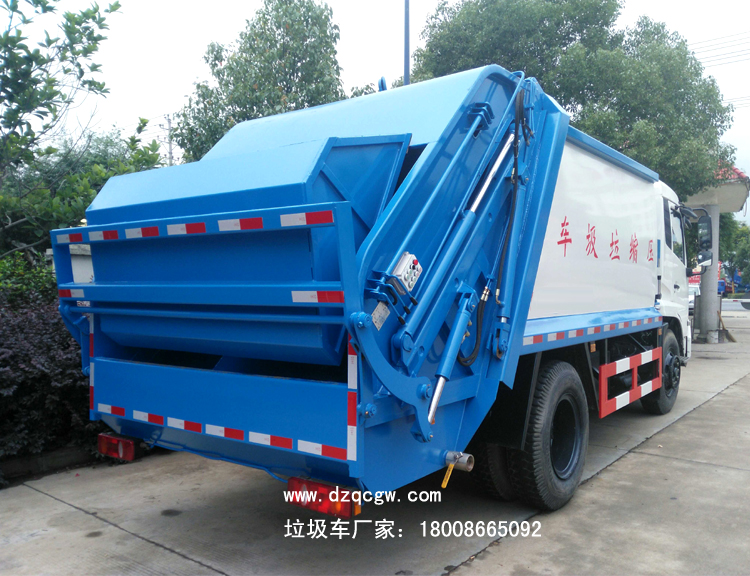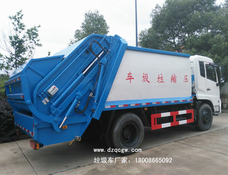 底盤說明:東風(fēng)天錦平頭一排半平標(biāo)頂駕駛室,康機(jī)或東風(fēng)180馬力發(fā)動(dòng)機(jī),4.5T前橋,9噸后橋,東風(fēng)6檔變速箱,9.00R20鋼絲胎,帶空調(diào),ABS。 上裝說明: 廂體材料為武鋼優(yōu)質(zhì)炭鋼,厚度為邊5mm,廂體容積為8立方米。由裝料機(jī)構(gòu)、壓縮機(jī)構(gòu)、卸料機(jī)構(gòu)、油泵、油箱、控制閥等組成的液壓機(jī)構(gòu)組成。裝料機(jī)構(gòu)由支架、連桿機(jī)構(gòu)、凸輪、掛鉤等組成,在油缸作用下,將垃圾桶內(nèi)的垃圾自動(dòng)翻轉(zhuǎn)倒入料斗內(nèi)。新款有9支液壓缸制動(dòng),不帶副壓板,液壓控制操作系統(tǒng)為電動(dòng)控制和手動(dòng)控制。 后翻轉(zhuǎn)機(jī)構(gòu)選裝:1、掛桶翻轉(zhuǎn)機(jī)構(gòu)(可選帶鐵桶或塑料桶),手動(dòng)及電控操作 2、簸箕斗翻轉(zhuǎn)機(jī)構(gòu) 3、擺臂式翻轉(zhuǎn)機(jī)構(gòu) |