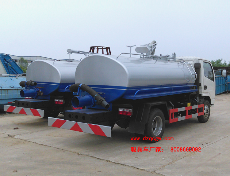 吸糞管 : 可360度旋轉,抽滿糞罐時間:≤5min,吸程:≥6m。自吸自排,壽命長,工作速度快,容量大,運輸方便,適用于收集運輸糞便、泥漿、原油等液體物質。P.S.可根據客戶要求加裝灑水功能,水罐糞罐獨立分倉,即可吸糞又可灑水,一車兩用。加裝水箱或工具箱,加裝液位報警裝置。